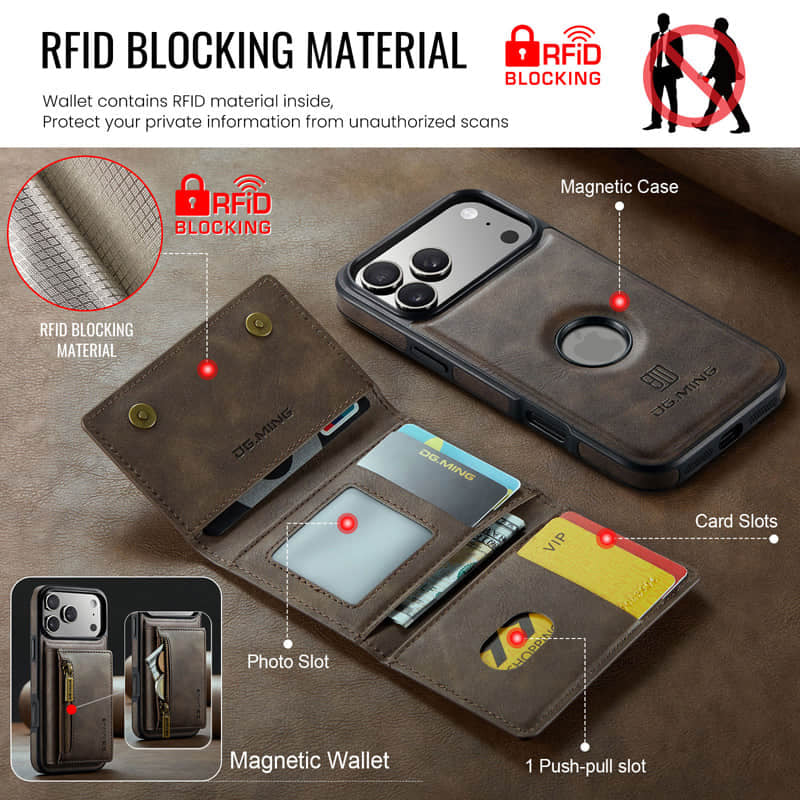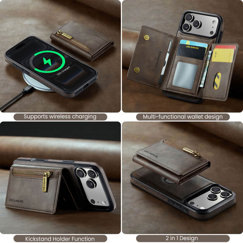 Casekis RFID Magnetic Detachable Leather Wallet Phone Case Coffee