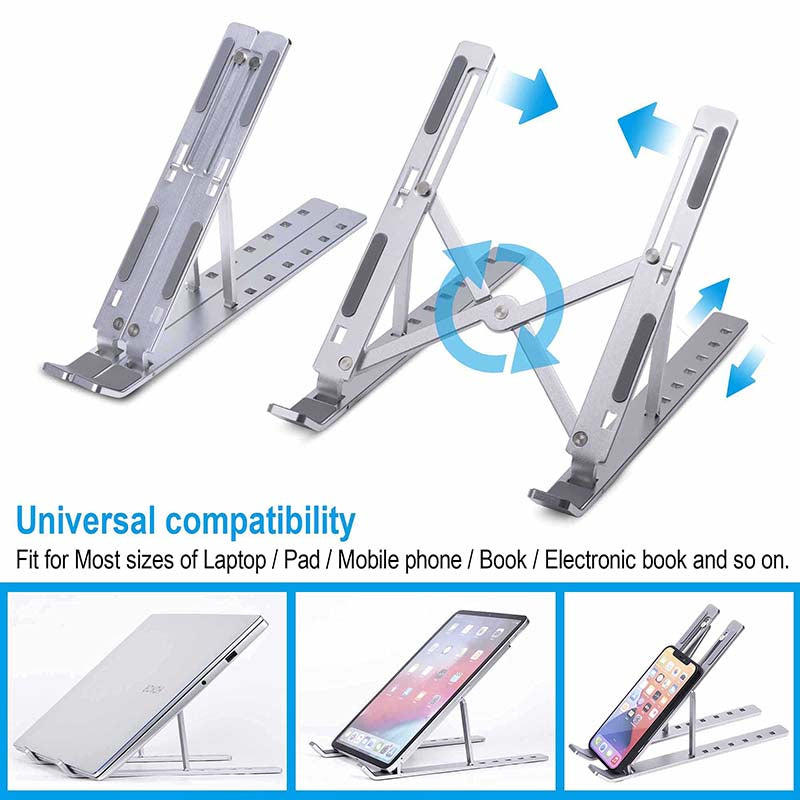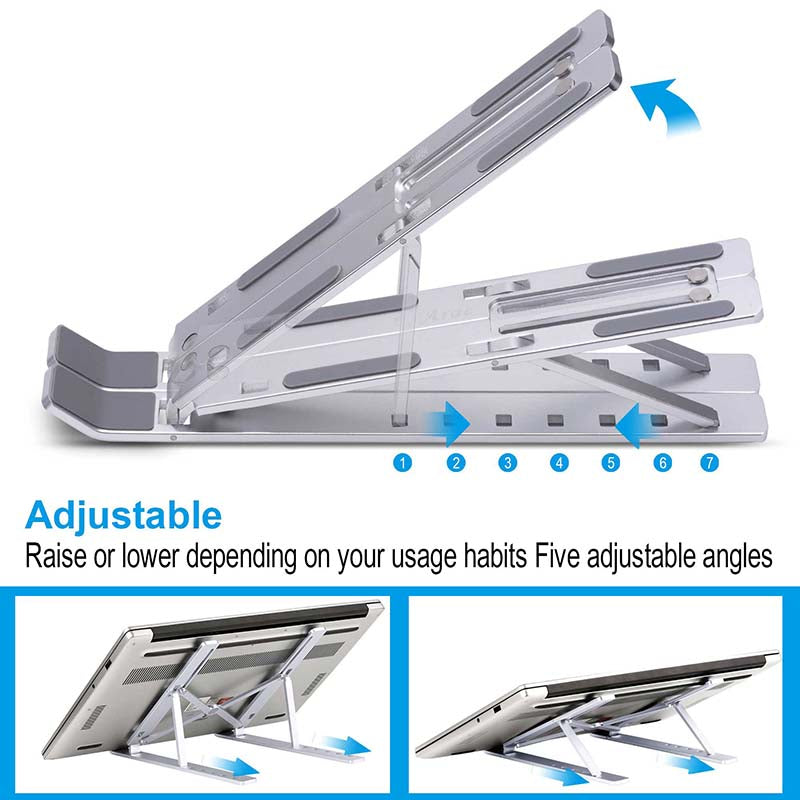 - Adjustable Angle: This laptop stand offers 5 angle adjustments, there will always be an angle for your comfort, which helps to reduce eye strain, shoulder pain, back pain.