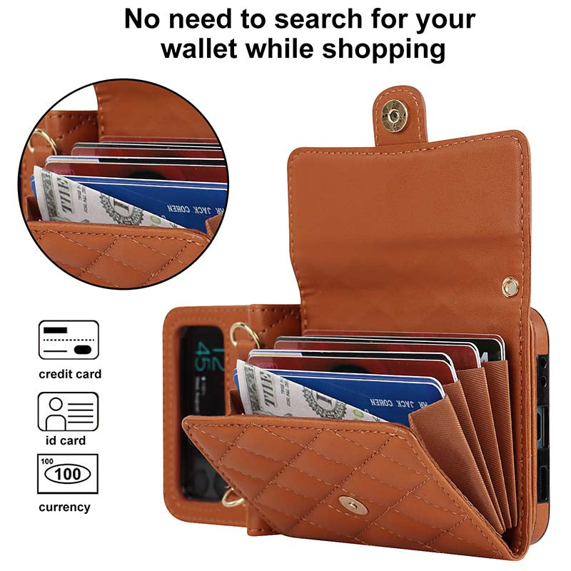 • Load image into Gallery viewer, Casekis Crossbody Cardholder Phone Case For Galaxy Z Flip 3 Brown