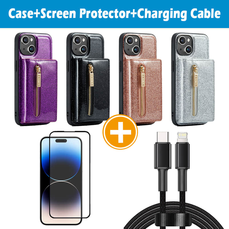 Casekis Glitter Cardholer Magnetic Phone Case for iPhone 14 Plus