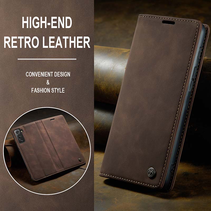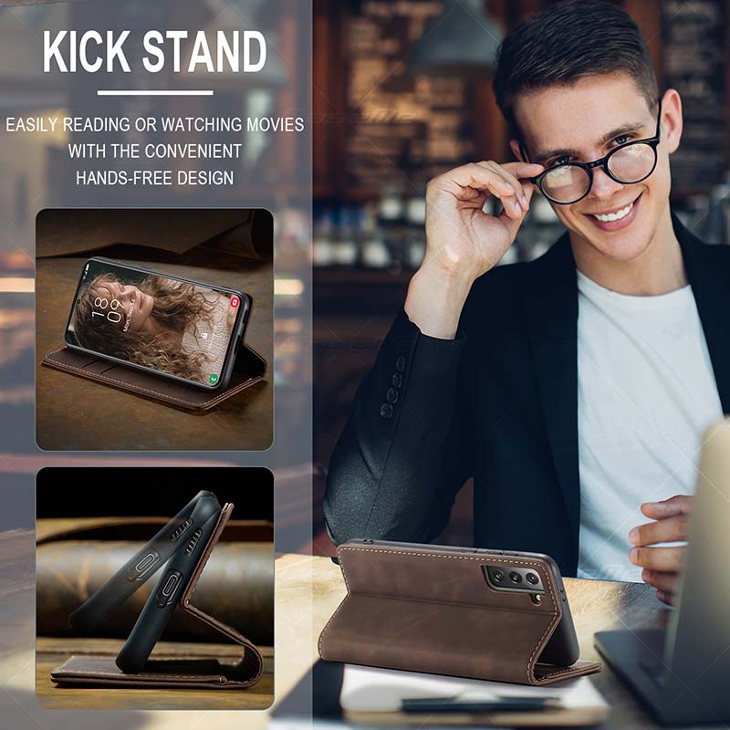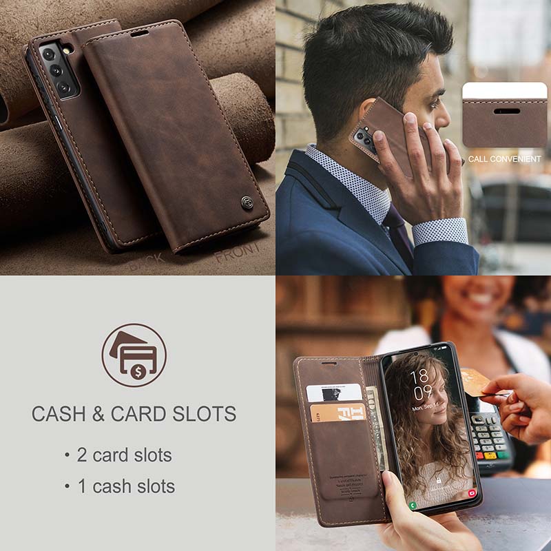 Casekis Genuine Cowhide Leather Button Flip Phone Case For Galaxy S21 Plus 5G