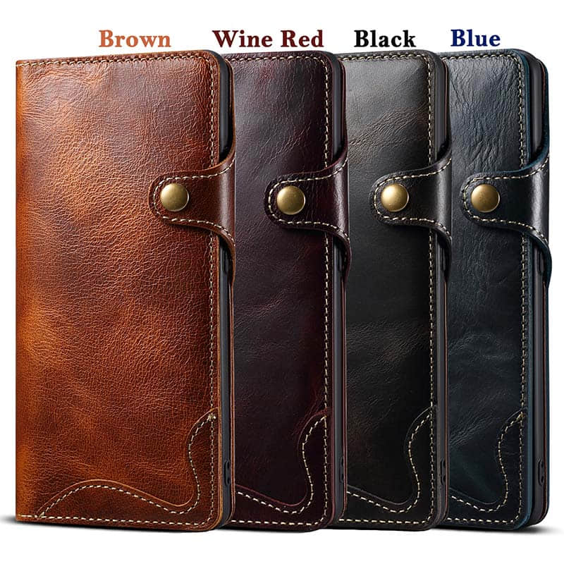 Casekis Genuine Cowhide Leather Button Flip Phone Case for Galaxy S20 Ultra 5G