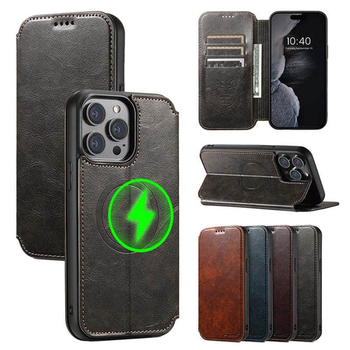 Casekis Leather Wallet MagSafe Phone Case Black
