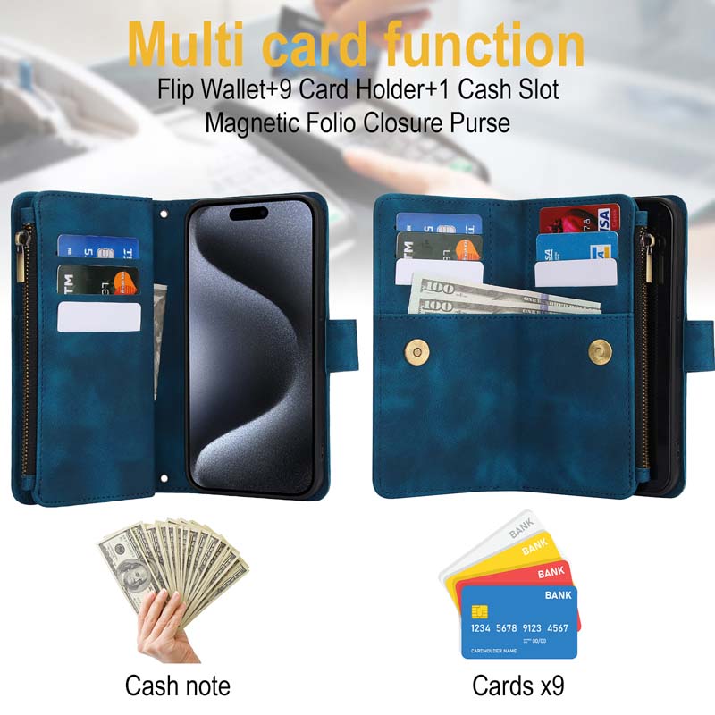 - 9 Card Slots Design: With 9 card slots, it can meet your daily card storage needs for IDs, driver's licenses, credit cards, membership cards, etc.