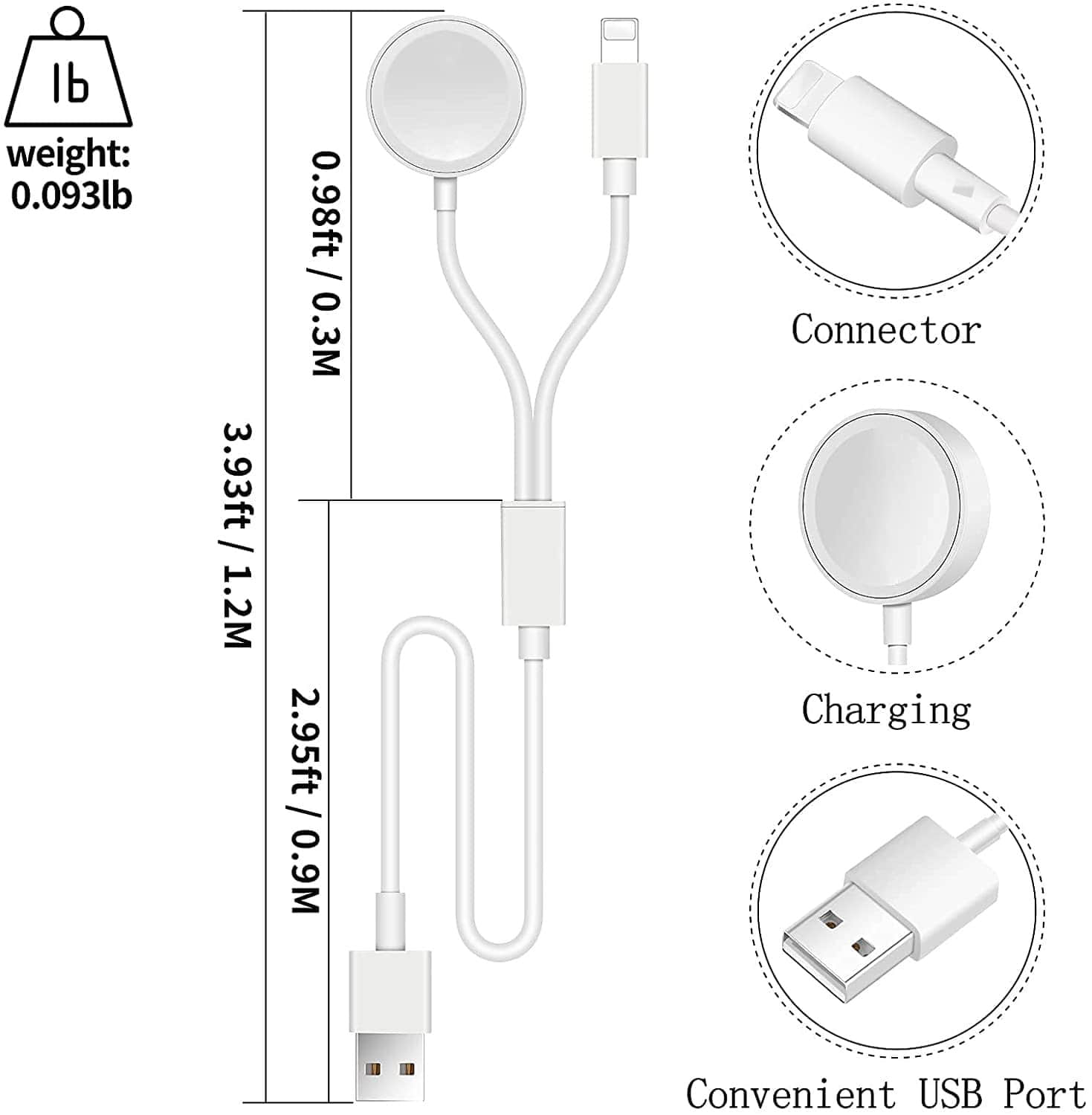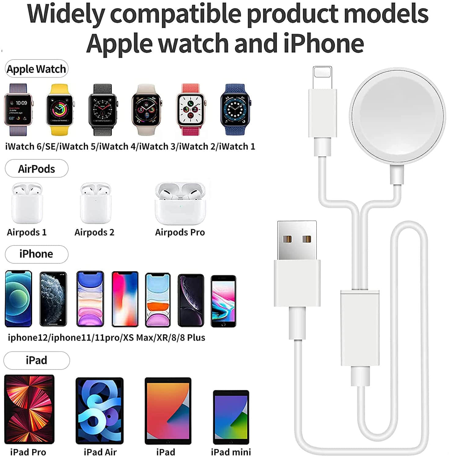 2-in-1 Upgraded Version: For Apple watch charger cable 2-in-1 can quickly charge your Watch (SE/6/5/4/3/2/1) and Phone (13Series/12Series/11Series/X/XS//XS Max/XR/8/8 plus) & earphone series at the Same Time. The charging speed is 1.5 times that of others, which can save more charging time.
