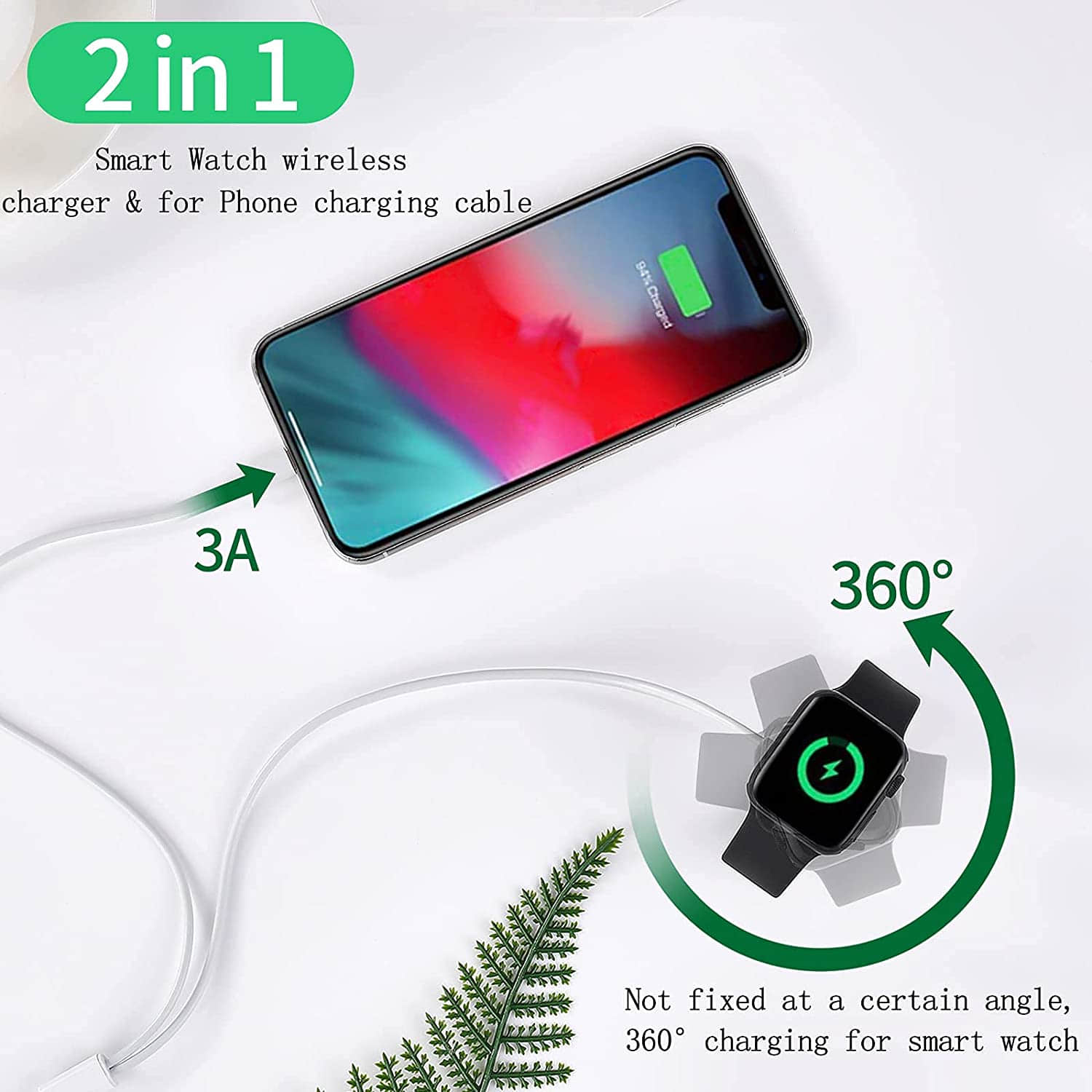 2 PACK-2 in 1 Convenient and Easy: The watch charger is convenient to charge Watch&Phone at the same time. One-time purchase, convenient multiple times. You can put the Watch charger cable in your frequent activities, bedroom, living room, company, frequently used backpack, you can use it at any time or give your family.