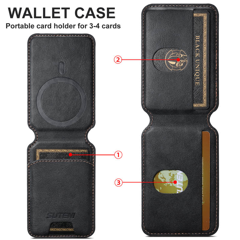 - Portability: Holds 4 cards and can be used flexibly as a phone stand.
